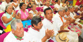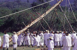 El olor a manteca, a cueritos y a carnitas ya invade el ambiente del patio familiar; ahí los hombres abuelos, adultos, jóvenes y niños, en gran camaradería, compadres y familiares, le atizan a la lumbre, rodean la paila para que no se peguen los cueritos, les ponen sal, los pellizcan para ver si ya están buenos, y entre rodeo y rodeo los viejos se empujan un buche de aguardiente o un trago de cerveza, mientras discurre la charla en totonaca, lengua aguda y cantarina, entre carcajadas y sonrisas. TRAJE ANTIGUO TRAJE ACTUAL |